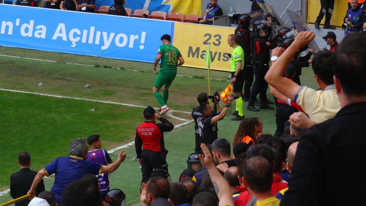 Trendyol 1. Lig 38. Hafta MKE Ankaragükü, spor etkinliklerinin konukları. Elyaman Stadyumu’nda oynanan oyun Tribune etkinlikleriyle başladı. Yarışmanın ilk düdüğüne başlamadan önce, Maraton ve arkadaki standlardan Amed ekibinin oyuncularına yabancı maddeler atıldı. Yarışma olaylar nedeniyle 2 dakika geç başladı. Oyunun 9. dakikasında Amed Sports etkinlikleri köşe vuruşunun hayranlarını kazandı, köşe bölgede bir şişe su başlattı.